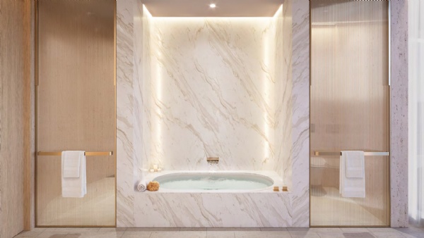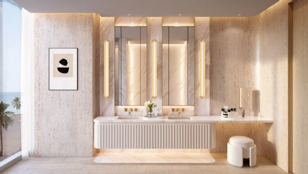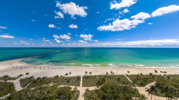 The luminous glass facade of this 275-foot tower reflects the dazzling beauty of the natural surroundings. Inside, every exquisite element is designed with impeccable attention to detail. The grand scale of these beachfront family villas—with their generous balconies, large windows and private elevators—creates discrete residences.