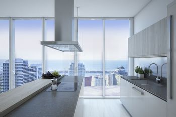 • Miele electric cook top with custom designed stainless steel exhaust hood