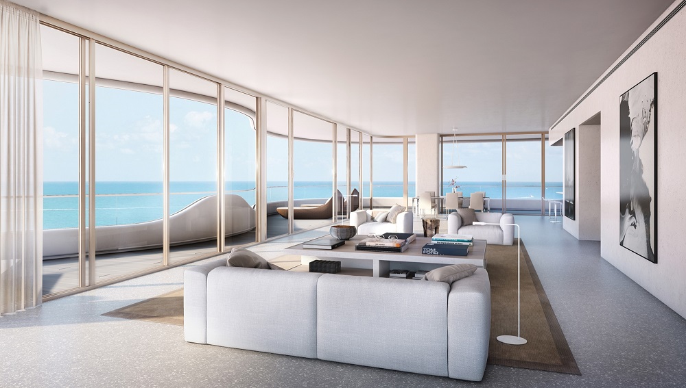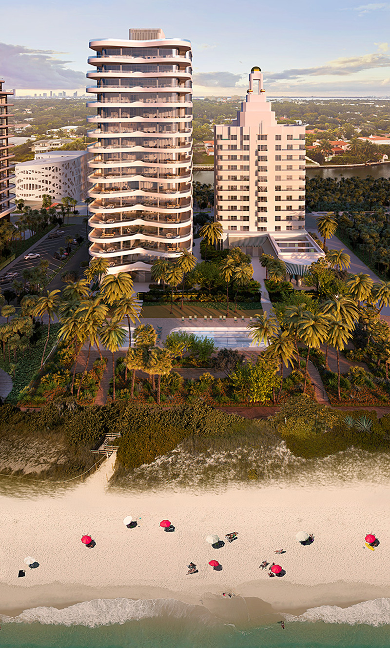 The 41 residences designed by Brandon Haw are located on the beach at 34th Street and Collins Avenue in the heart of Miami’s most highly anticipated destination. The Faena District features a perfect balance of exquisite residences, the uniquely luxurious Faena Hotel, innovative and immersive entertainment, destination shopping, as well as the remarkable Faena Forum—all by award-winning architects and designers. The Versailles contemporary tower has been designed to maximize views both to the ocean, the bay, and the Miami skyline, articulated by large sweeping terraces east and west that modulate down to a combination of large bay windows with window seats and curved terraces that create a sensuous articulation—an abstraction of Roy F. France’s curved corners and rippling facades of the Classic building.