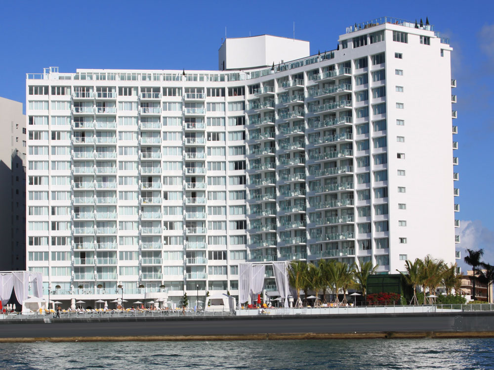 Miami Beach's Mondrian is actually found within the South Beach area, a fifteen story near the western side of the building overlooking Biscayne Bay and the various waterfront neighborhoods like Hibiscus Island and Star Island. Besides its residences, the building also functions as a hotel, essentially offering the best of both worlds when it comes to living and lodging in the barrier island.