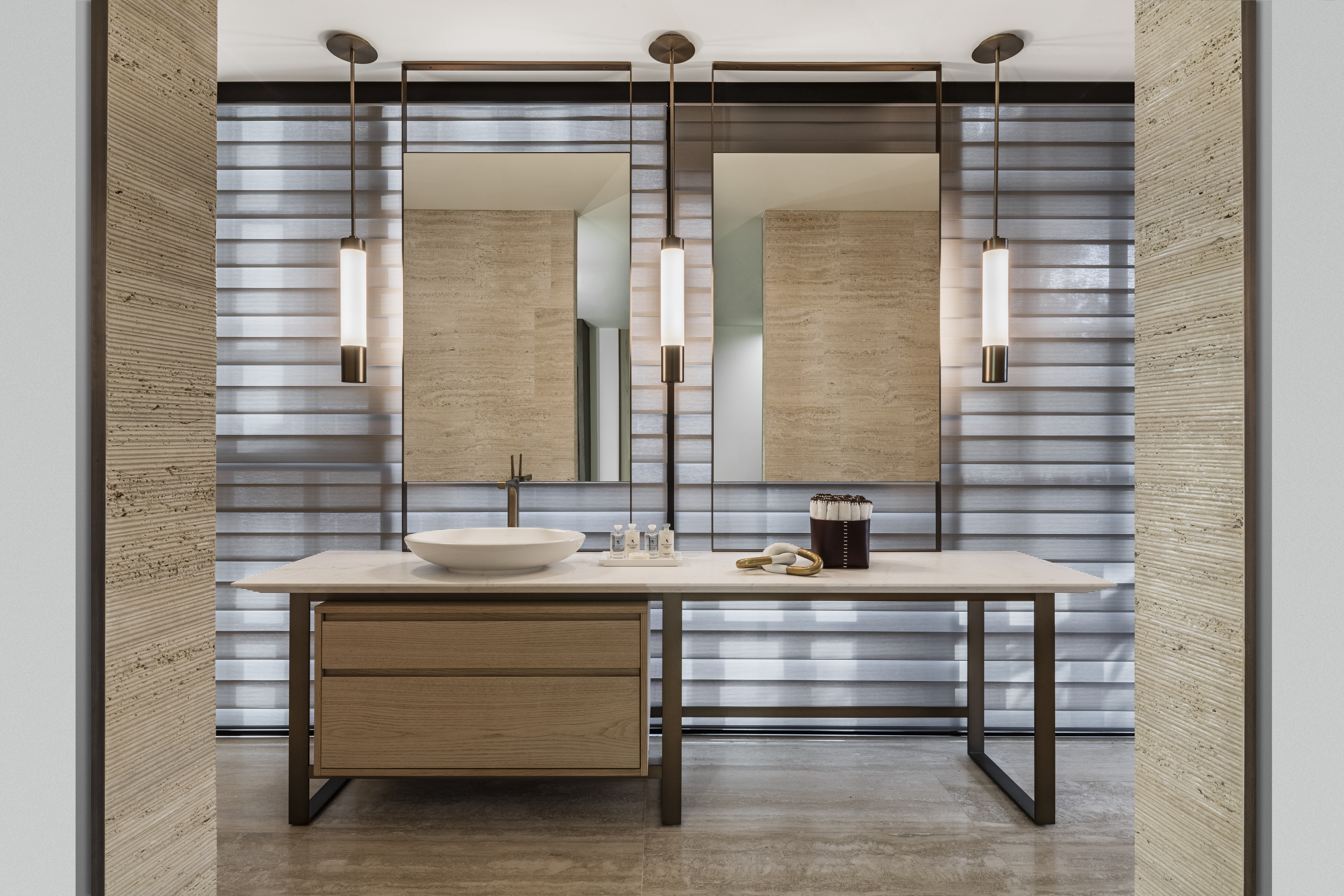 • Custom brushed bronze Hansgrohe AXOR Citterio fittings and accessories.