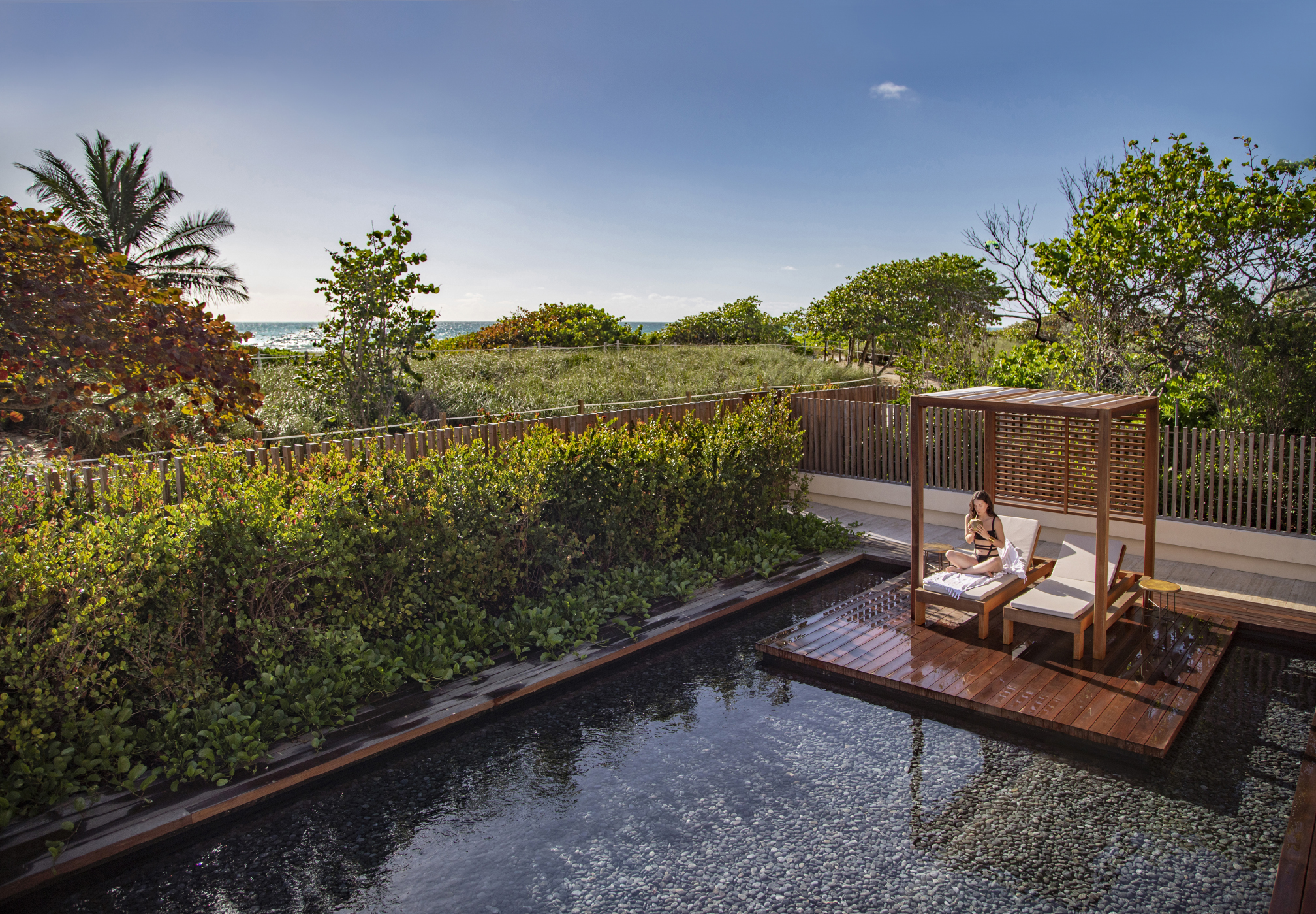 • Beachside swimming pool and tranquil meditation pond with sunbeds and cabanas